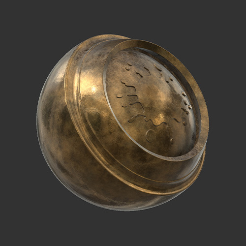 That’s not to say you should avoid using presets altogether — Mari ships with a number of material examples that are a great low-stress starting point for creating your own material projects. Take Gold_Metal, for example. As it is, it’s a physically accurate representation of how gold interacts with lighting. But that’s all it is. It has no specific details or defects that set it in place in a larger world context and that’s why it looks so irregular. You'll never find a clean block of gold with no bump, scratches, fingerprints or smears in the real world. To make it a believable material like this, you’ll need to go in and add these details manually using your final shader and your knowledge of how your maps contribute to it as a guide.