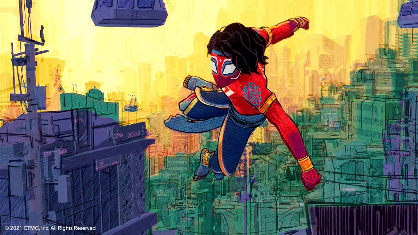 For creating Mumbattan, based on the vibrant culture of Mumbai merged with the modernism of Manhattan, the artists took inspiration from 1970s comics, including everything from pulpy paper stock to printing misalignments. The simplified color palette meant that most of the detail would be conveyed through ink lines. As a result, the team developed an innovative procedural drawing tool called Kismet, giving artists the ability to control ink outlines.