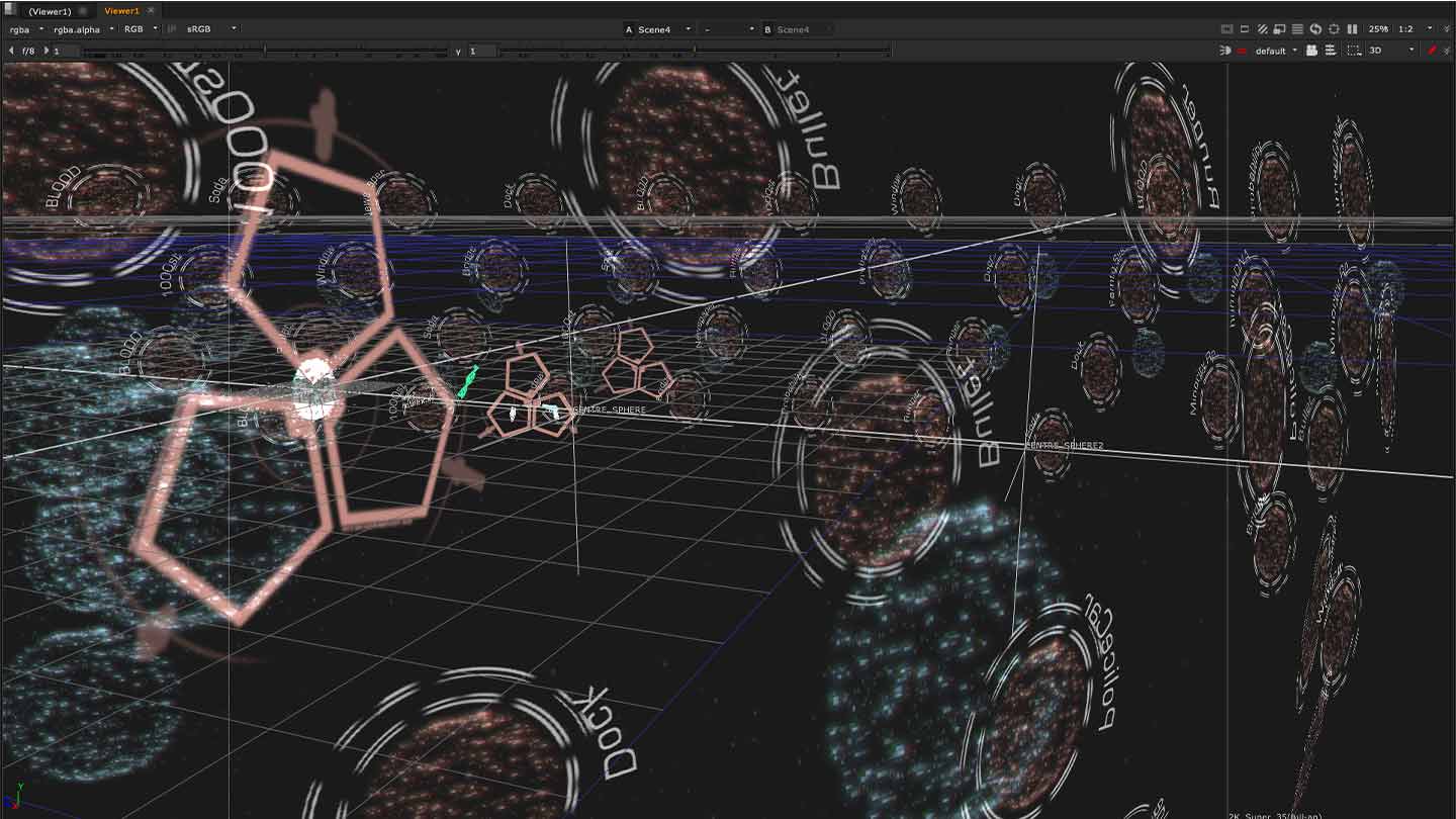 “We used Nuke to integrate 3D elements into practical footage shot on location or a set, and used its particle system to create elements to enhance a shot, bringing the 2D and 3D matte paintings to life by adding live footage and animations,” Tim tells us.