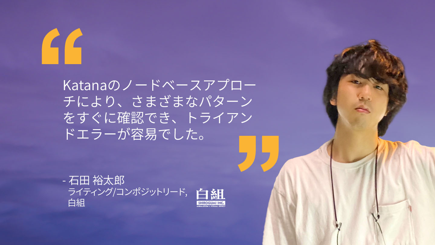 白組のKatana導入は約4年前に遡る。アニメーション長編映画のCG制作のワークフローを検討する中で、石田氏が個人的に検証を進めていたKatanaを使ったワークフロー提案を聞いた吉田氏は、Katanaの本格導入を決断した。