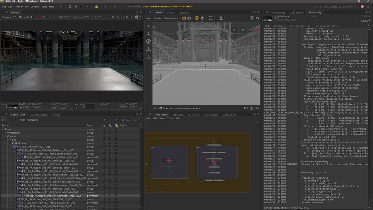 導入時にはいくつかの課題も存在した。石田氏は、「Katanaはノードベースでシーンを構築するため、従来のMayaや3dsMaxとは異なる操作方法に慣れる必要がありました。また、DCCツールからAlembicを書き出し、Katanaに受け渡すフローも初めての経験でした」と話す。