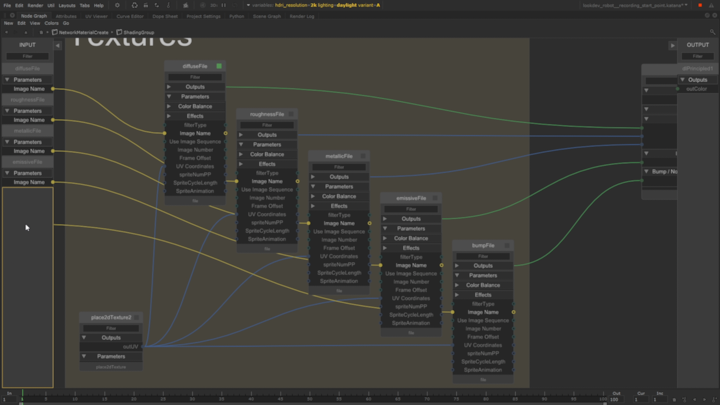 With the Network Material Edit, artists can add new, remove or replace existing individual nodes. The workflow extends to modifications to whole parts of a shading network. Added nodes are given a green footer which makes them stand out from edited or unadjusted nodes.