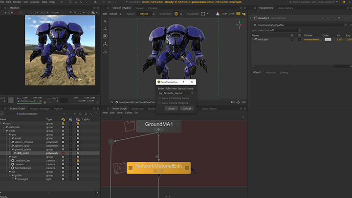 Customise your UI to the way you work with Katana 3.6’s Dockable Widgets. This feature really comes into its own when paired with look development and lighting workflows using the Monitor Layer, added in Katana 3.5, as a full screen tab. It also forms the basis of further improvements artists will see in future Katana updates.