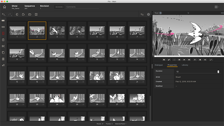 Flix lives at the heart of your pre-production, making it easier for teams to collaborate together and iterate on ideas. Everyone including artists, production staff, directors, editors, and others have access to the latest versions of every section of your projects, be they long form or episodic. Comments, notes, and feedback can be left on individual boards for review and discussion across teams. Even people contributing from different geographical locations are kept in the loop: work with remote artists just as if they were right there at the studio, with direct access to Flix wherever they are.