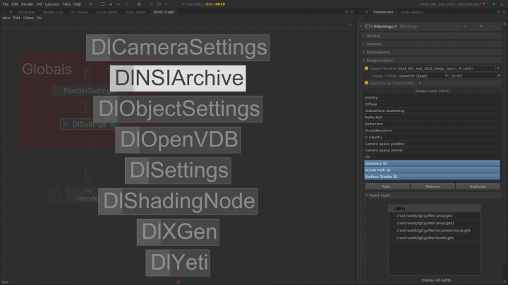 Some workflows in Maya or Houdini do not have an easy path for transport to tools like Katana. The 3Delight NSI Archive is a renderer ready archive format, and the simplest way to transfer complex setups, like Maya Mash to Katana for rendering when they do not transport easily through common open source data formats.