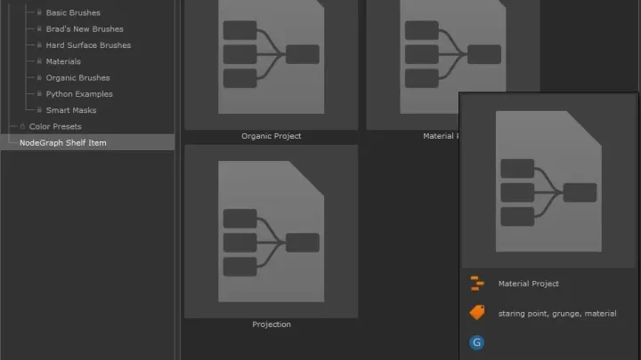 Artists can now export part of the project’s Node Graph as Node Packages. Similar to Materials and Smart Masks, Node Packages bundle up the Node Network, along with any source images, into a single file. This provides easier portability of premade Node Graphs between artists by removing the need to re-import images that cannot be found at their original paths.
