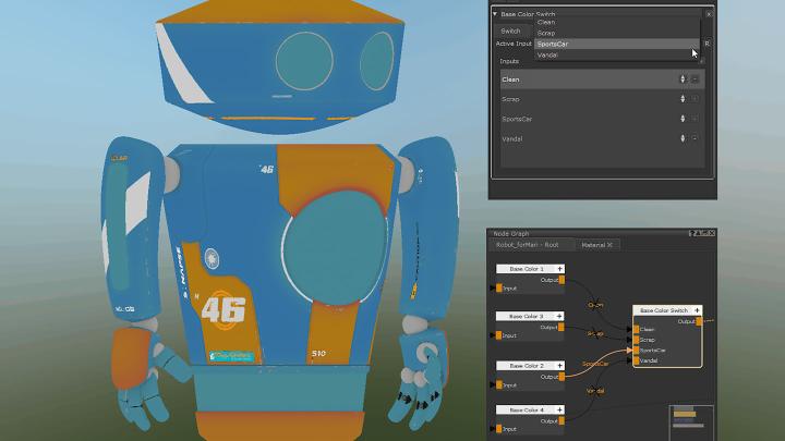 With Mari 7.1, you can export your material with different color variations, quickly switching between different looks for your textures by simply changing the input from the Switch Node’s Properties. This significantly improves performance, while enabling versatility when creating materials or smart masks.